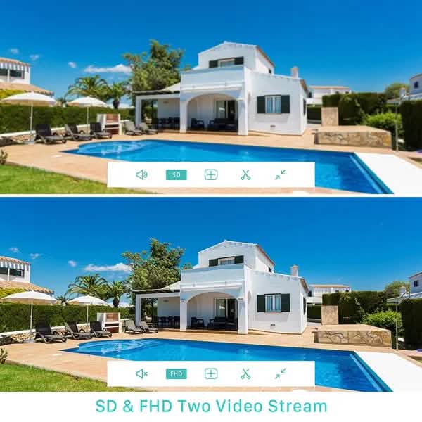 - Two-Way Audio built-in microphone and speaker enable real-time communication with visitors or family members
