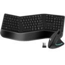 The ergonomic keyboard features a split-frame layout paired with a pillowed wrist rest, encouraging a natural hand position that reduces strain and promotes better posture during extended typing sessions. Its 105-key layout with a numeric keypad ensures precise input, while the noiseless keys provide a quiet, smooth typing experience. The compact, space-saving design measures 19.7′ x 8.3′ x 1.6′ and weighs only 2.4 lbs, making it ideal for both home and office use.